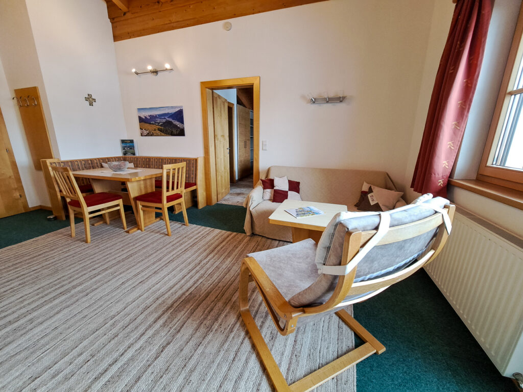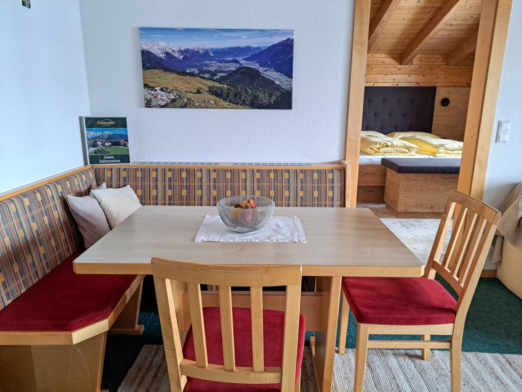 Entspannen Sie sich in der nach Westen ausgerichteten Wohnung, die Platz für 4 Gäste bietet. Mit zwei getrennten Bädern ausgestattet sind diese Räumlichkeiten ideal für 4 Erwachsene geeignet, oder für Familien, wenn die Kinder schon mal länger brauchen. Die Bäder, mit Dusche/WC und Föhn, sorgen mit Bodenheizung für ein wohliges Gefühl. Die großzügige Wohnung ist mit einer Couch und einem Fernseher ausgestattet. Ihre Wertgegenstände können Sie sicher im Zimmersafe verwahren, während Sie die Region erkunden. Von Ihrem Balkon aus genießen Sie den Blick auf den beeindruckenden Mieminger Gebirgszug mit dem markanten Simmering.